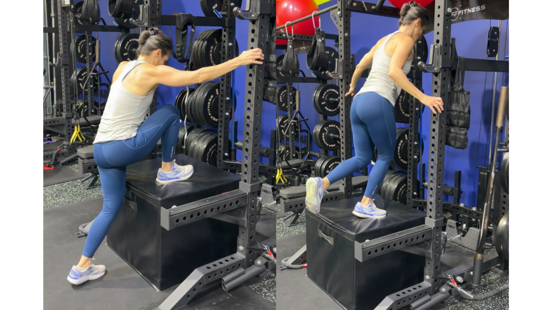 Step-ups and Single-Leg Work — unilateral training (working one side at a time) is especially important as we age because it corrects imbalances, challenges stability, and activates the glutes differently than bilateral movements. Here's how to do these