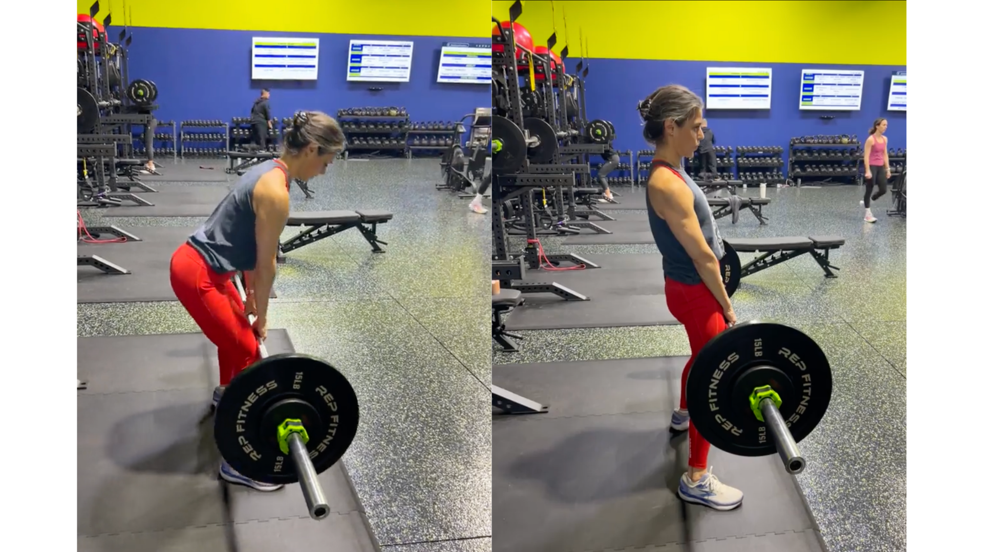 Romanian Deadlifts (RDLs) — a hinge pattern that places particular emphasis on the hamstrings and glutes under load. One of the most effective exercises for building the posterior chain in midlife women. Here's how to do these: