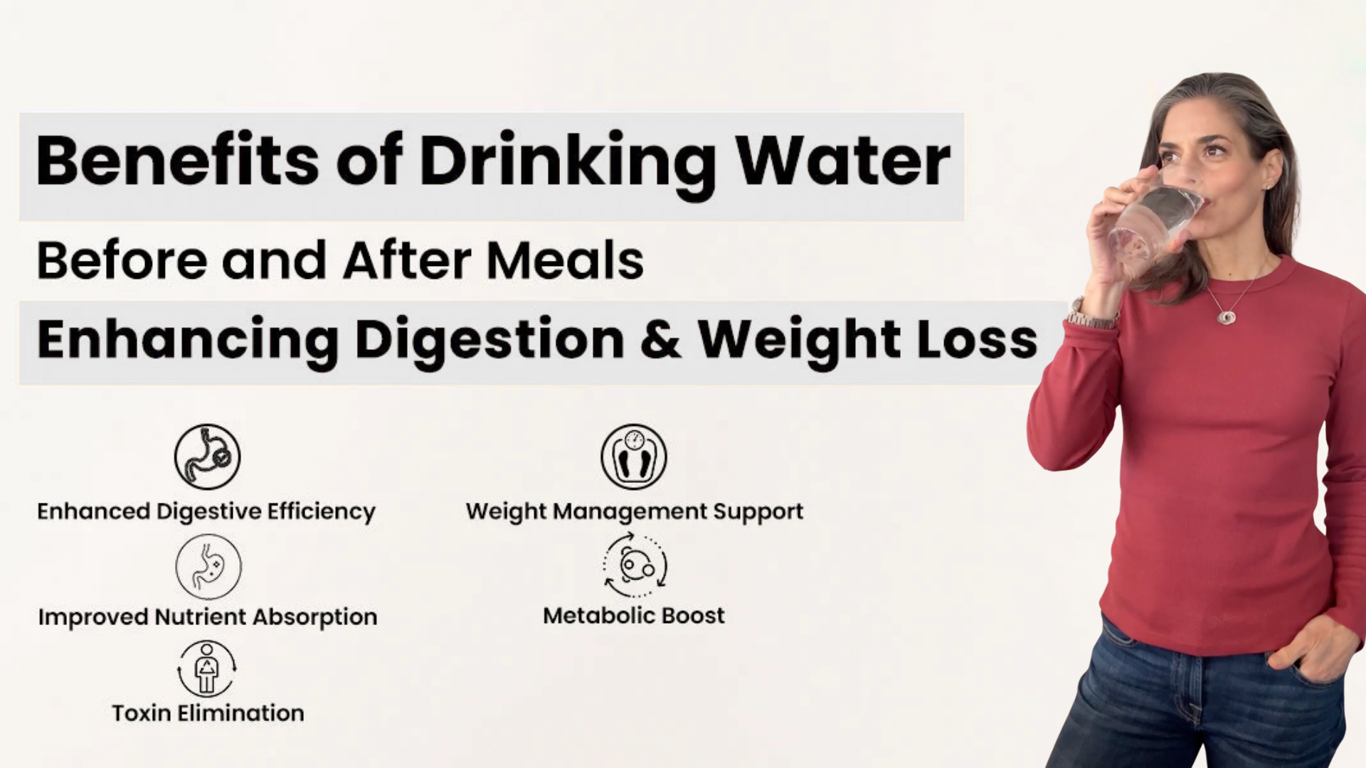 This is a terrible habit that western cultures have adopted, but drinking while eating really dilutes the power of your gut to break down food, causing malabsorption, which can lead to bloating and stomach issues. Aim to drink water before or after meals, not during. I'll typically stop drinking water 30-45 minutes before a meal, and won't touch it until about 30 minutes after, to ensure my digestion isn't stressed.