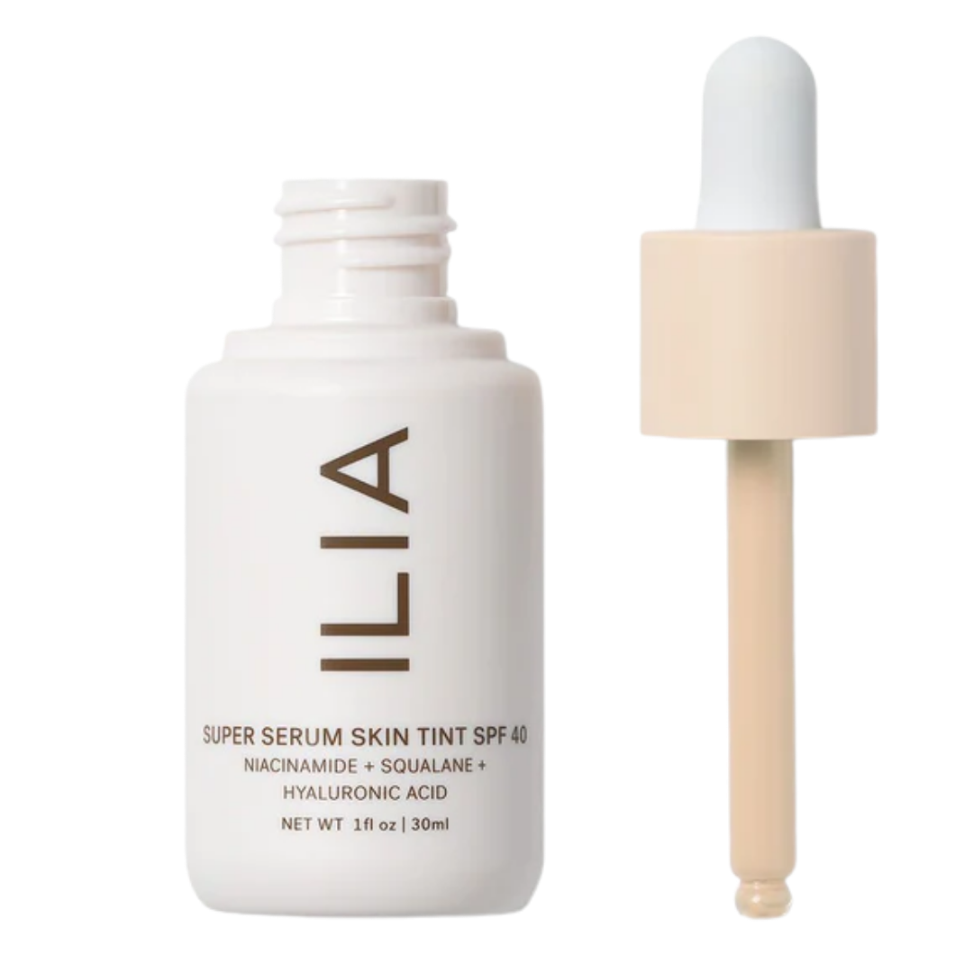 I love OGEE’s primer which offers SPF40 mineral protection AND sets my makeup all day. Then there's RMS’ SunCoverUp mineral SPF50: set it and forget it, just beautiful all-day coverage that provides medium coverage and a subtle glow. Ilia’s Super Serum Skin Tint is also a fave.